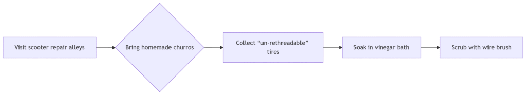 The defining moment came in a Lima alley. Javier (our tire mentor) pointed at my shoes: “Esos… son de mi basura?” When I nodded, he hugged me with grease-stained arms.